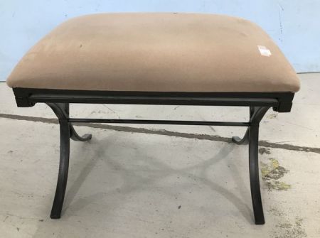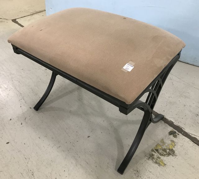 Modern Metal Base Vanity Stool, cushion seat, is dirty, 18"h., 24"w. Modern Metal Base Vanity Stool, cushion seat, is dirty, 18"h., 24"w.