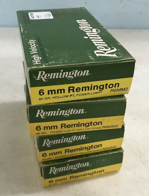Remington 6mm Remington Power Lokt, 80 grain, hollow point, 80 cartridges. Remington 6mm Remington Power Lokt, 80 grain, hollow point, 80 cartridges.