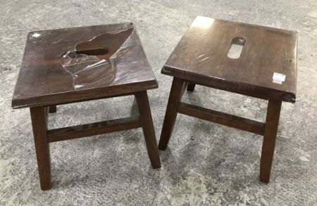 Pair of cherry foot stools, with handle, 12"h., 12"w. Pair of cherry foot stools, with handle, 12"h., 12"w.
