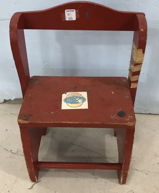 Small red painted doll chair, 16"h. Small red painted doll chair, 16"h.