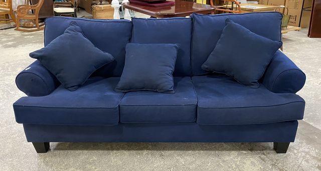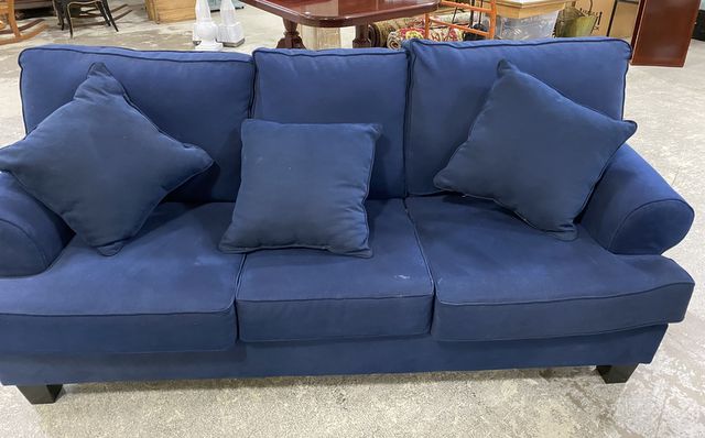 Purple Upholstered Sleeper Sofa, pull out full size bed, three cushion, above average condition, 7' long. Purple Upholstered Sleeper Sofa, pull out full size bed, three cushion, above average condition, 7' long.