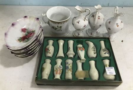 884 Porcelain Vases, Mug, Mini Vases, and Dishes
