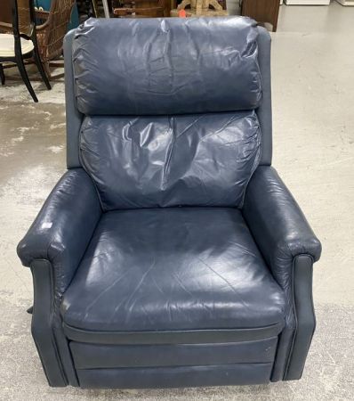 Blue Vinyl recliner, working condition, no tears, 37"h., Blue Vinyl recliner, working condition, no tears, 37"h.,