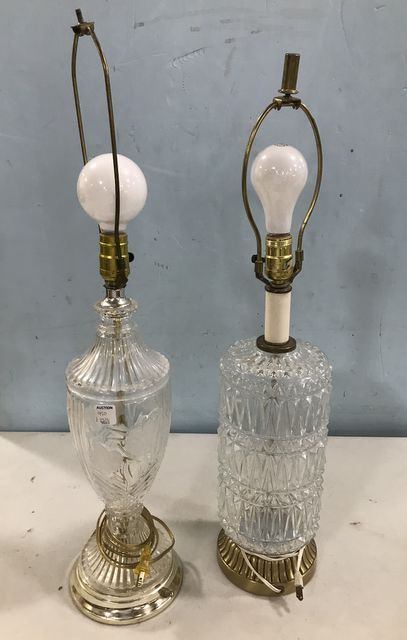 Two pressed glass vase lamps, brass base, 30"h. Two pressed glass vase lamps, brass base, 30"h.