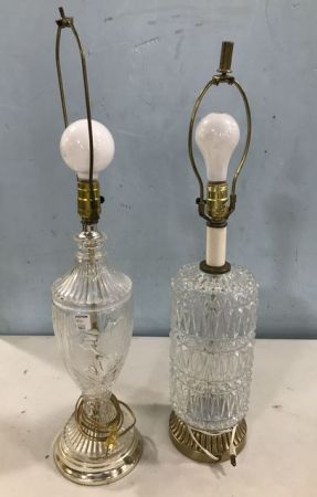 950 Two Pressed Glass Vase Lamps