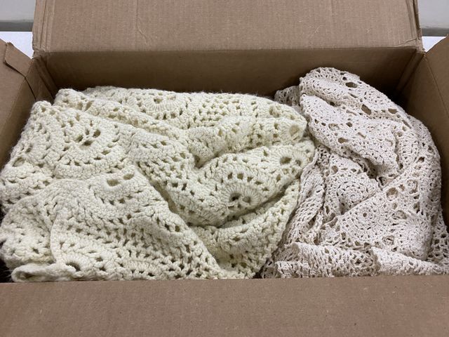 Three Hand Crotched Table and Chair Covers, all clean no stains, good condition. Three Hand Crotched Table and Chair Covers, all clean no stains, good condition.