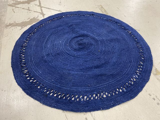 Opalhouse Jute Braided Round Area Rug, blue, good condition, 6"dia. Opalhouse Jute Braided Round Area Rug, blue, good condition, 6"dia.