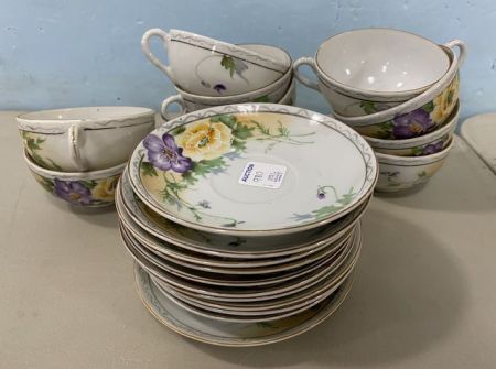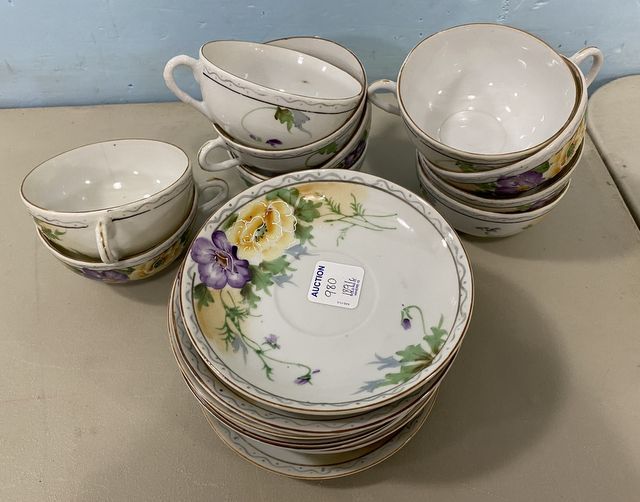 Japanese Porcelain Hand Painted Cups and Saucers, 11 saucers, 10 cups. Japanese Porcelain Hand Painted Cups and Saucers, 11 saucers, 10 cups.