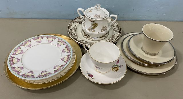 Lenox "Solitaire" china pieces, Regency cup, sugar, hand painted plates. Lenox "Solitaire" china pieces, Regency cup, sugar, hand painted plates.
