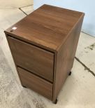 Modern Pressed Wood Oak Finish Filing Cabinets, two drawers, on wheels, 30"h., 15"w. Modern Pressed Wood Oak Finish Filing Cabinets, two drawers, on wheels, 30"h., 15"w.