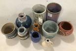 Group of Stoneware Pottery Mugs and Vases, assorted styles, signed, glazed and matte, tallest is 5"h. Group of Stoneware Pottery Mugs and Vases, assorted styles, signed, glazed and matte, tallest is 5"h.