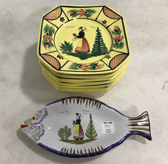 Quimper France Hand Painted Plates, 8 plates, fish dish. Quimper France Hand Painted Plates, 8 plates, fish dish.