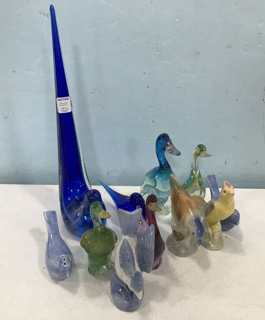 Collection of glass decorative birds, blue birds, art glass pieces, also hand painted pottery bird figurines. Collection of glass decorative birds, blue birds, art glass pieces, also hand painted pottery bird figurines.
