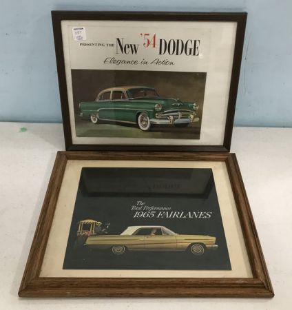 New 1954 Dodge and 1965 Fairlanes Prints, Advertising Posters, framed, 12"h., 16"w. New 1954 Dodge and 1965 Fairlanes Prints, Advertising Posters, framed, 12"h., 16"w.