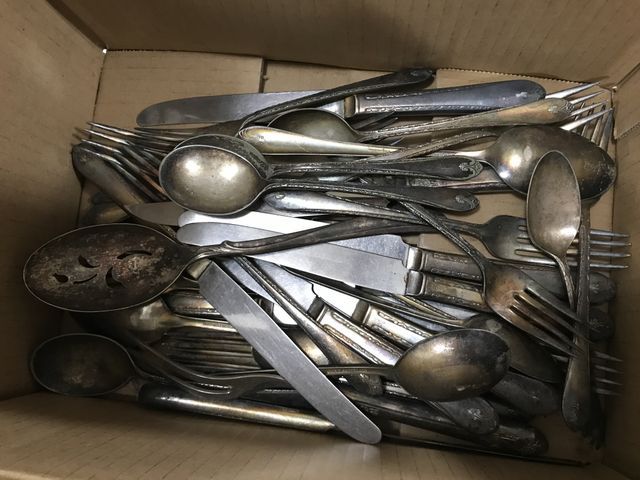 Group of Assorted Silver Plate Flatware, different styles, tarnished. Group of Assorted Silver Plate Flatware, different styles, tarnished.