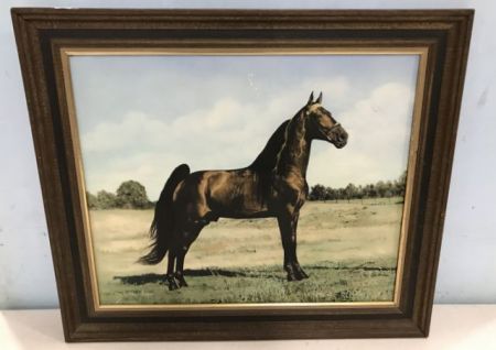 Jim Dixon Horse Poster, wood framed, has scratches on board, 25"h., 29"w. Jim Dixon Horse Poster, wood framed, has scratches on board, 25"h., 29"w.