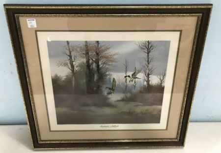Backwater Mallards Print by Joe Michelet, New Orleans artist, framed, signed, numbered 332/980, 21"h., 23"w. Backwater Mallards Print by Joe Michelet, New Orleans artist, framed, signed, numbered 332/980, 21"h., 23"w.
