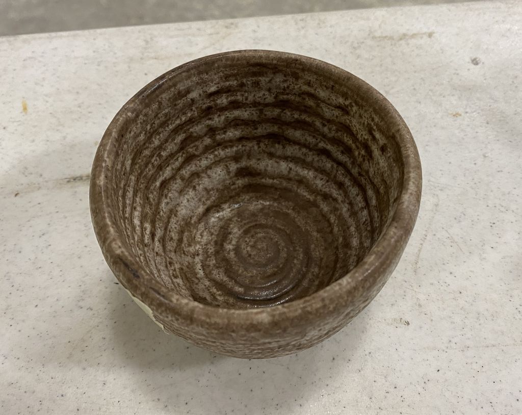 Peters Pottery Bowl, signed on P, 2 1/2"h., 4"dia Location Left Plastic Racks Peters Pottery Bowl, signed on P, 2 1/2"h., 4"dia Location Left Plastic Racks