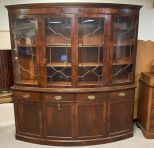 Antique Hepplewhite Style Breakfront China Cabinet, two piece, veneer mahogany, good condition, has wood shelves, 86"h., 83"w., 21"d. Location 6th Row Antique Hepplewhite Style Breakfront China Cabinet, two piece, veneer mahogany, good condition, has wood shelves, 86"h., 83"w., 21"d. Location 6th Row