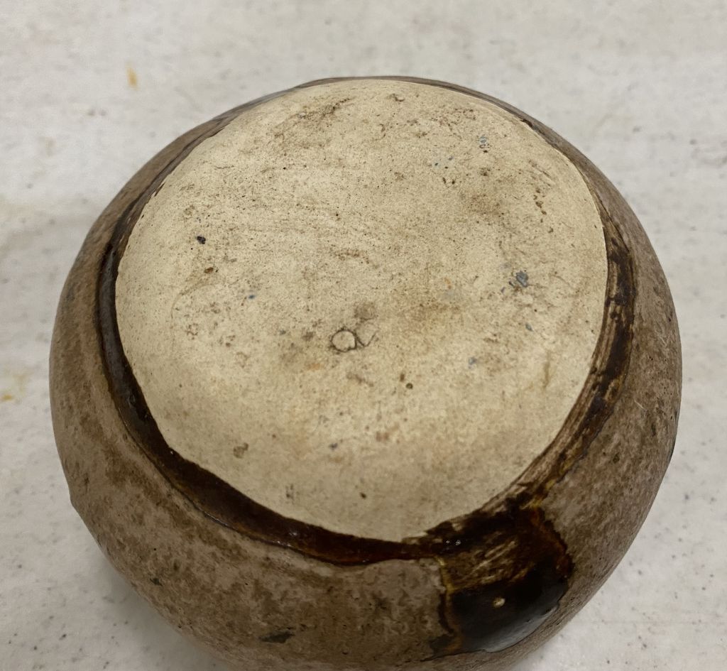 Unsigned McCarty Pottery Bowl, river mark, 3"h., 4"dia. Location Left Plastic Racks Unsigned McCarty Pottery Bowl, river mark, 3"h., 4"dia. Location Left Plastic Racks