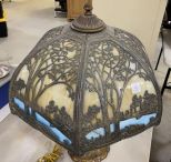 Slag Glass Silhouette Table Lamp, good condition, out of plantation in Louisiana, landscape with pond scenery, 25"h. Location 5th Row Slag Glass Silhouette Table Lamp, good condition, out of plantation in Louisiana, landscape with pond scenery, 25"h. Location 5th Row