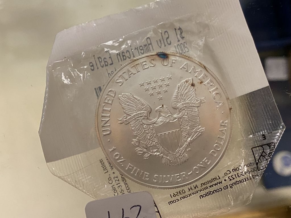 2001 American Eagle Dollar, uncirculated, 1oz fine silver. Location Locked Case 2001 American Eagle Dollar, uncirculated, 1oz fine silver. Location Locked Case