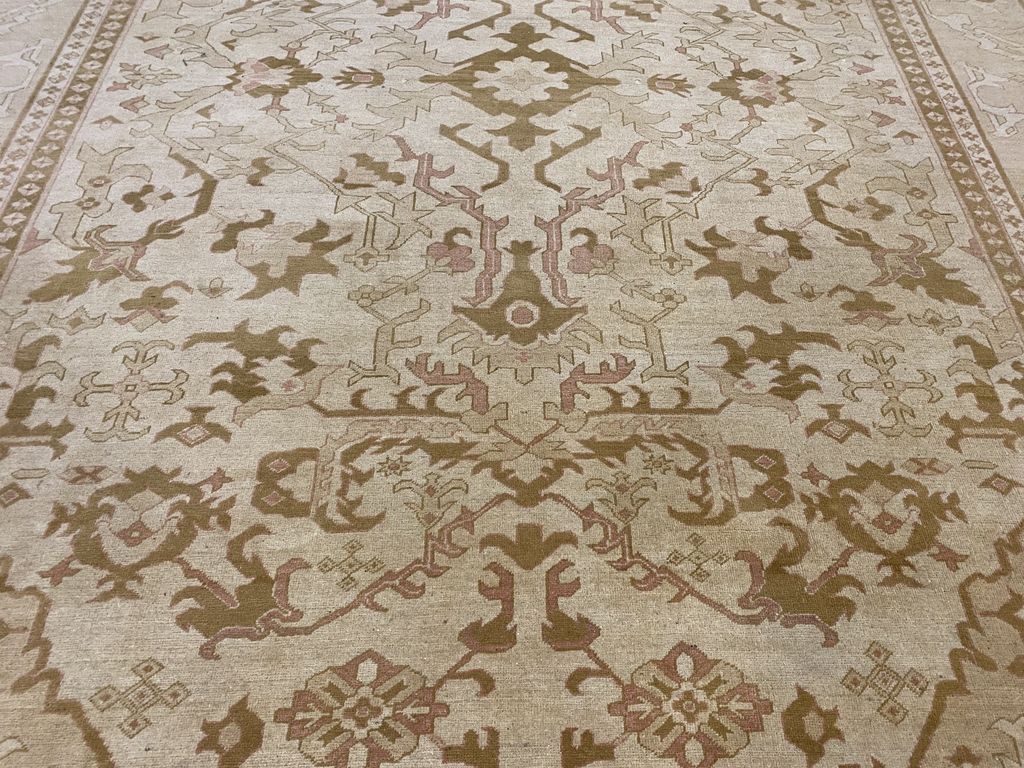 Large Oushak Wool Area Rug 10'7 x 13'7, beige, brown, some pink., good condition. Large Oushak Wool Area Rug 10'7 x 13'7, beige, brown, some pink., good condition.