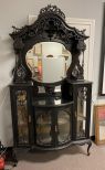 Antique Victorian Etagere Curio Cabinet, two piece, needs work, beveled mirror, no keys, 93"h., 48"w., 19"d. Location Left Office Antique Victorian Etagere Curio Cabinet, two piece, needs work, beveled mirror, no keys, 93"h., 48"w., 19"d. Location Left Office