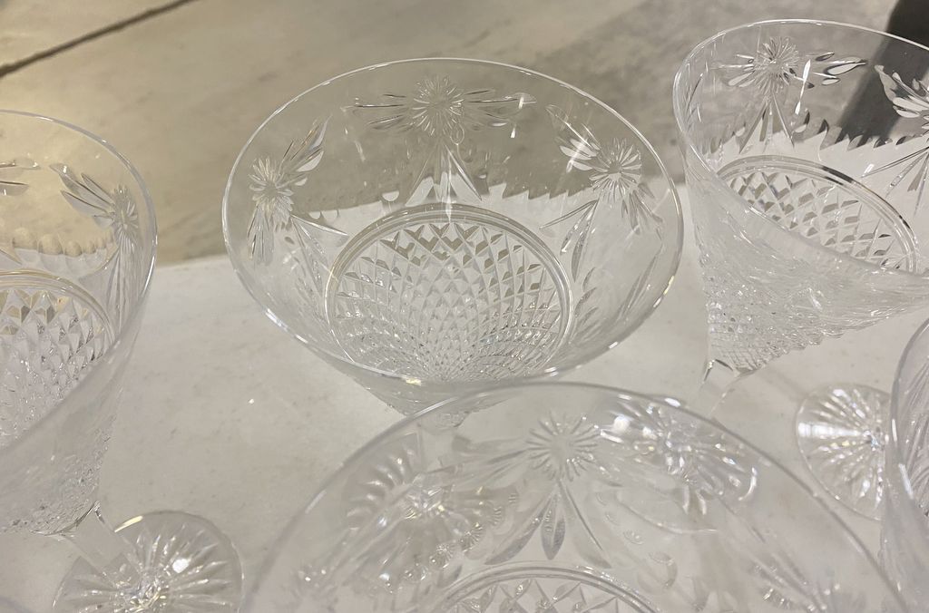 Ten Stuart "BeaconsField" Crystal Goblets, discontinued Pattern, 8 1/2"h., good condition. Ten Stuart "BeaconsField" Crystal Goblets, discontinued Pattern, 8 1/2"h., good condition.