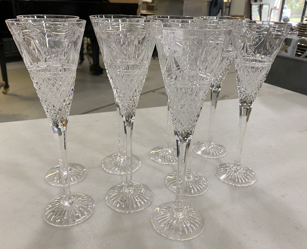 Nine Stuart "BeaconsField" Crystal Flute Champagnes, 9"h., good condition. Nine Stuart "BeaconsField" Crystal Flute Champagnes, 9"h., good condition.