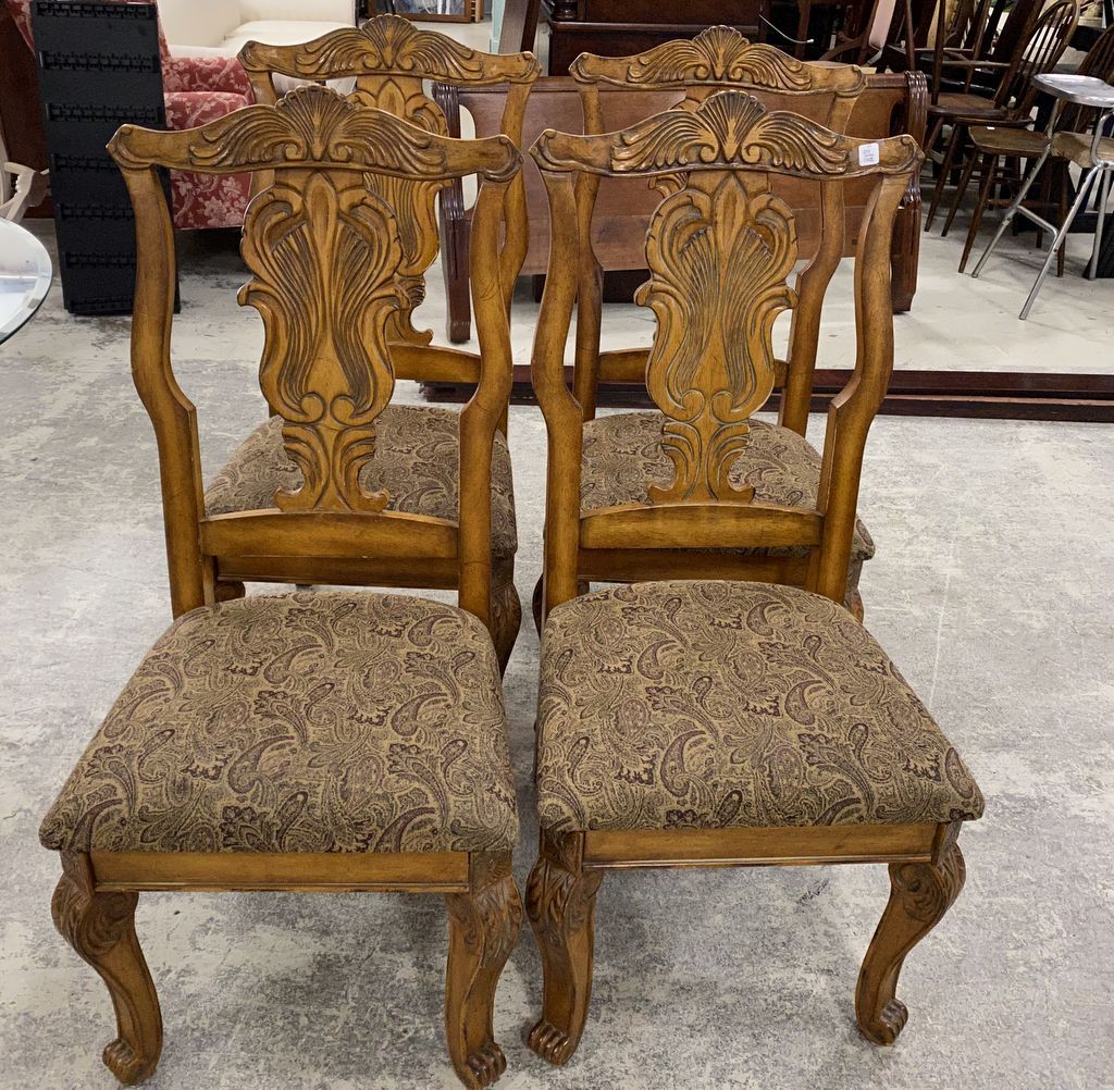 Four Antique Reproduction Dining Chairs, fabric cushions, good condition. Four Antique Reproduction Dining Chairs, fabric cushions, good condition.