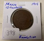 1915 10 Centavos Mexican Revolution Era, scarce, paper case. 1915 10 Centavos Mexican Revolution Era, scarce, paper case.