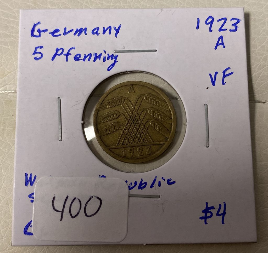 1923-A 5 Pfenning, Germany, Weimar Republic, Scarce, VF 1923-A 5 Pfenning, Germany, Weimar Republic, Scarce, VF