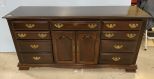 Cherry Chippendale Style Double Dresser, with tri fold mirror, 34"h., 69"w., 18"d. Location 2nd Row Cherry Chippendale Style Double Dresser, with tri fold mirror, 34"h., 69"w., 18"d. Location 2nd Row