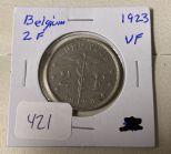 1923 Belgium 2 Franc, VF. 1923 Belgium 2 Franc, VF.