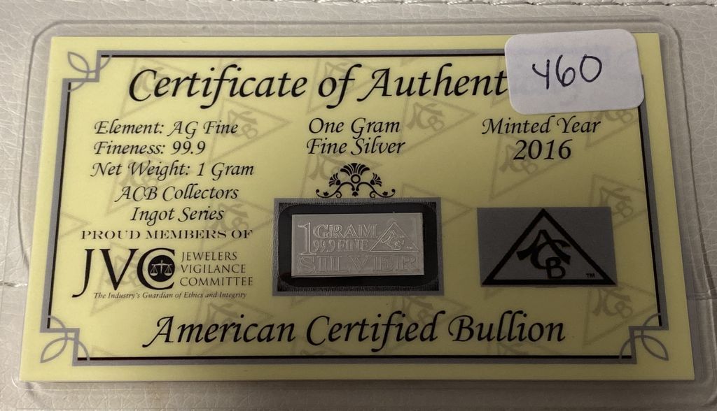 One Gram Fine Silver American Certified Bullion One Gram Fine Silver American Certified Bullion