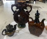 Group of Pottery Handled Vase, Jug, and Tea Pot. Vase 16"h. Group of Pottery Handled Vase, Jug, and Tea Pot. Vase 16"h.