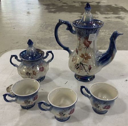 Set of Floral Porcelain Teapot, Covered Sugar Bowl, 3 Tea Cups, Location Right Metal Racks Set of Floral Porcelain Teapot, Covered Sugar Bowl, 3 Tea Cups, Location Right Metal Racks