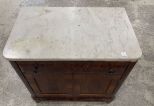 Antique Burl Mahogany Marble Chest, burl mahogany veneer, white marble top, double doors, single drawer, has wear, 29"h., 31"w., 19"d, Location 4th Row Antique Burl Mahogany Marble Chest, burl mahogany veneer, white marble top, double doors, single drawer, has wear, 29"h., 31"w., 19"d, Location 4th Row