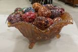 531 Carnival Glass Center Piece Bowl With Artisan Wooden Eggs