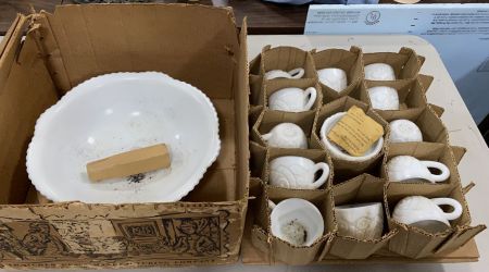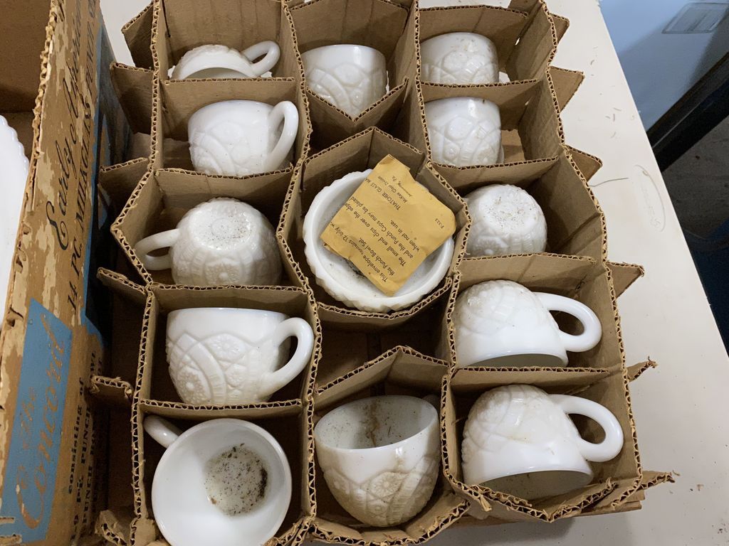 542 Thatcher Glass Milk Glass Punch Bowl Set