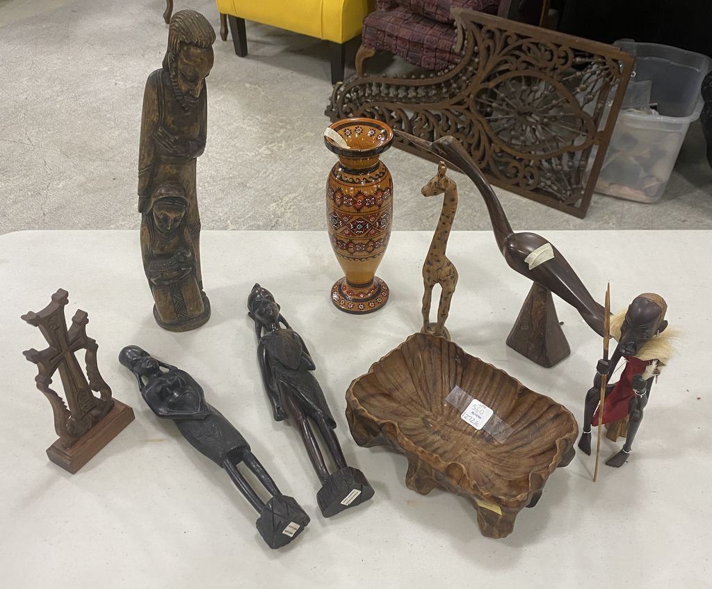 560 Group of Wooden Hand Carved Ethnic Figurines and Other Misc Items