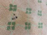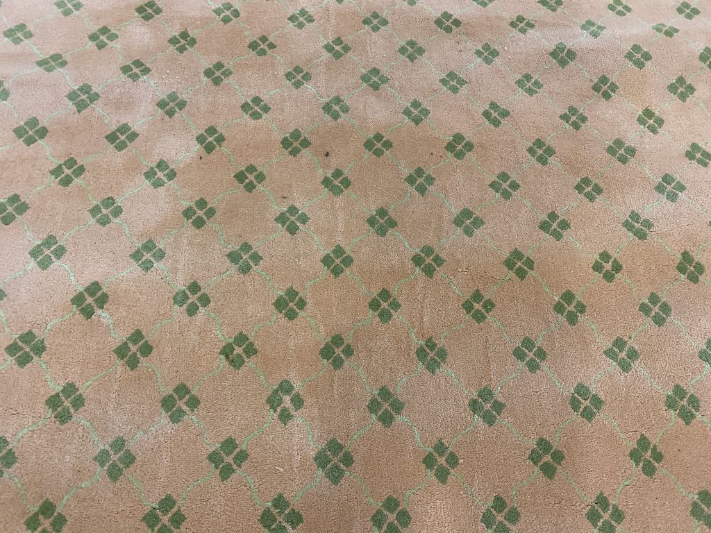 Large Gold Hand Woven Area Rug 9'8 x 13'10, gold color, good condition, octagon shape. one stained spot. Large Gold Hand Woven Area Rug 9'8 x 13'10, gold color, good condition, octagon shape. one stained spot.
