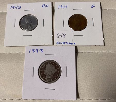1917 and 1943 Lincoln Cent, BU, 1893 V Nickel 1917 and 1943 Lincoln Cent, BU, 1893 V Nickel