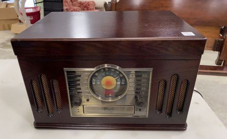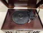 Crosley Radio and Record Player, modern piece, cherry case, 11"h., 17"w. Location 5th Row Crosley Radio and Record Player, modern piece, cherry case, 11"h., 17"w. Location 5th Row