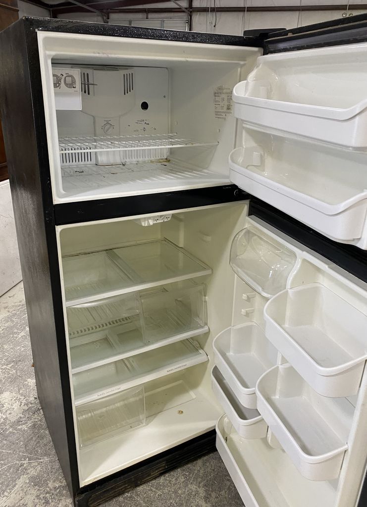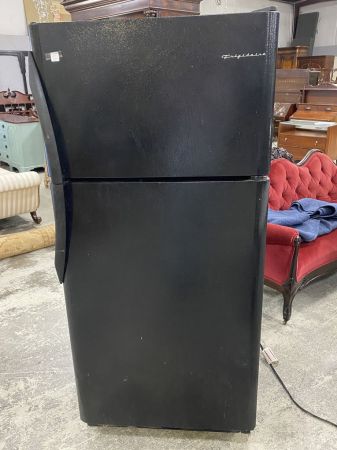 Frigidaire Refrigerator, black, used condition, working. Location 1st Row Frigidaire Refrigerator, black, used condition, working. Location 1st Row