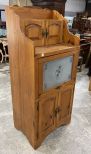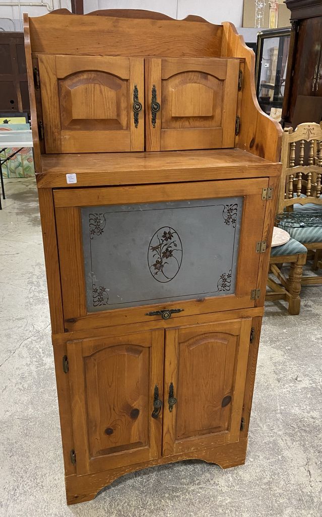 Pine Storage Cabinet, etched glass door, thin pine, light, 66"h., 28"w., 21"d. Pine Storage Cabinet, etched glass door, thin pine, light, 66"h., 28"w., 21"d.
