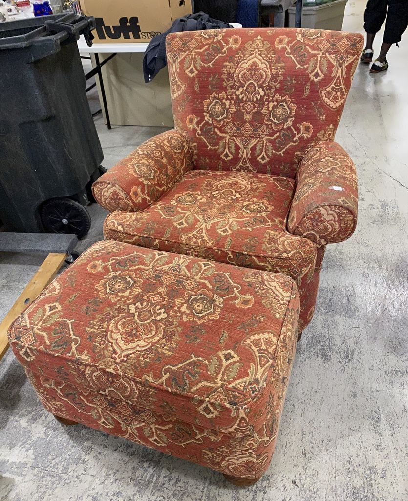 Craftmaster Upholstered Chair and Ottoman, clean fabric. Location 1st Row Craftmaster Upholstered Chair and Ottoman, clean fabric. Location 1st Row