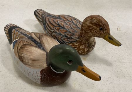 Small Mallard Duck & Hen Signed, 9"w. Small Mallard Duck & Hen Signed, 9"w.