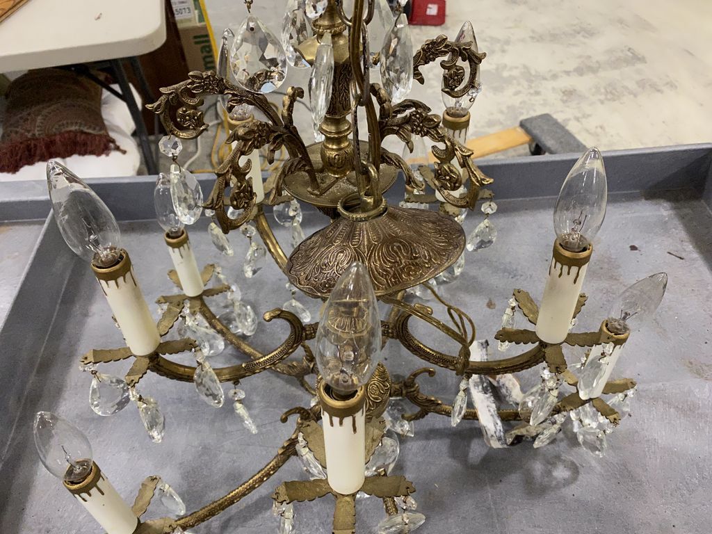 Vintage Metal Chandelier, with prisms, 22"h. Vintage Metal Chandelier, with prisms, 22"h.